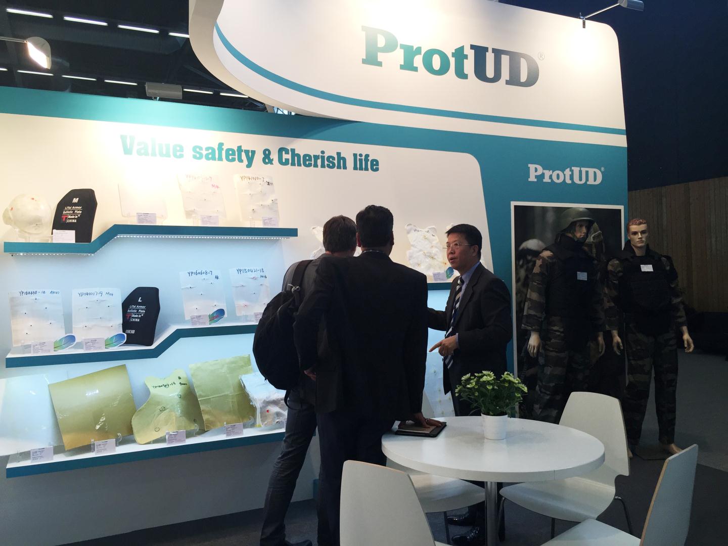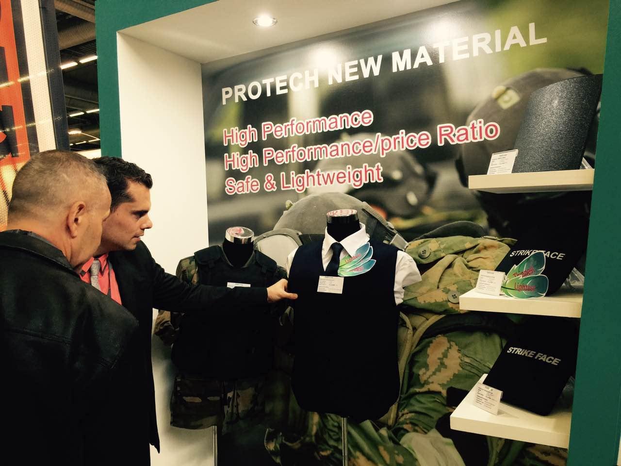 在本届展会上,北京普诺泰新材料科技有限公司展示了商品名为“普优泰®”的新型防弹复合材料及其下游制品,系列齐全、品种繁多,能够满足市场各个领域的不同需求。如现场展出的新型超软级防弹复合材料,能够实现多层折叠,使用者贴身穿着舒适、灵活,隐蔽性好,能够满足运动状态的各种需要,受到专业人士的广泛关注。