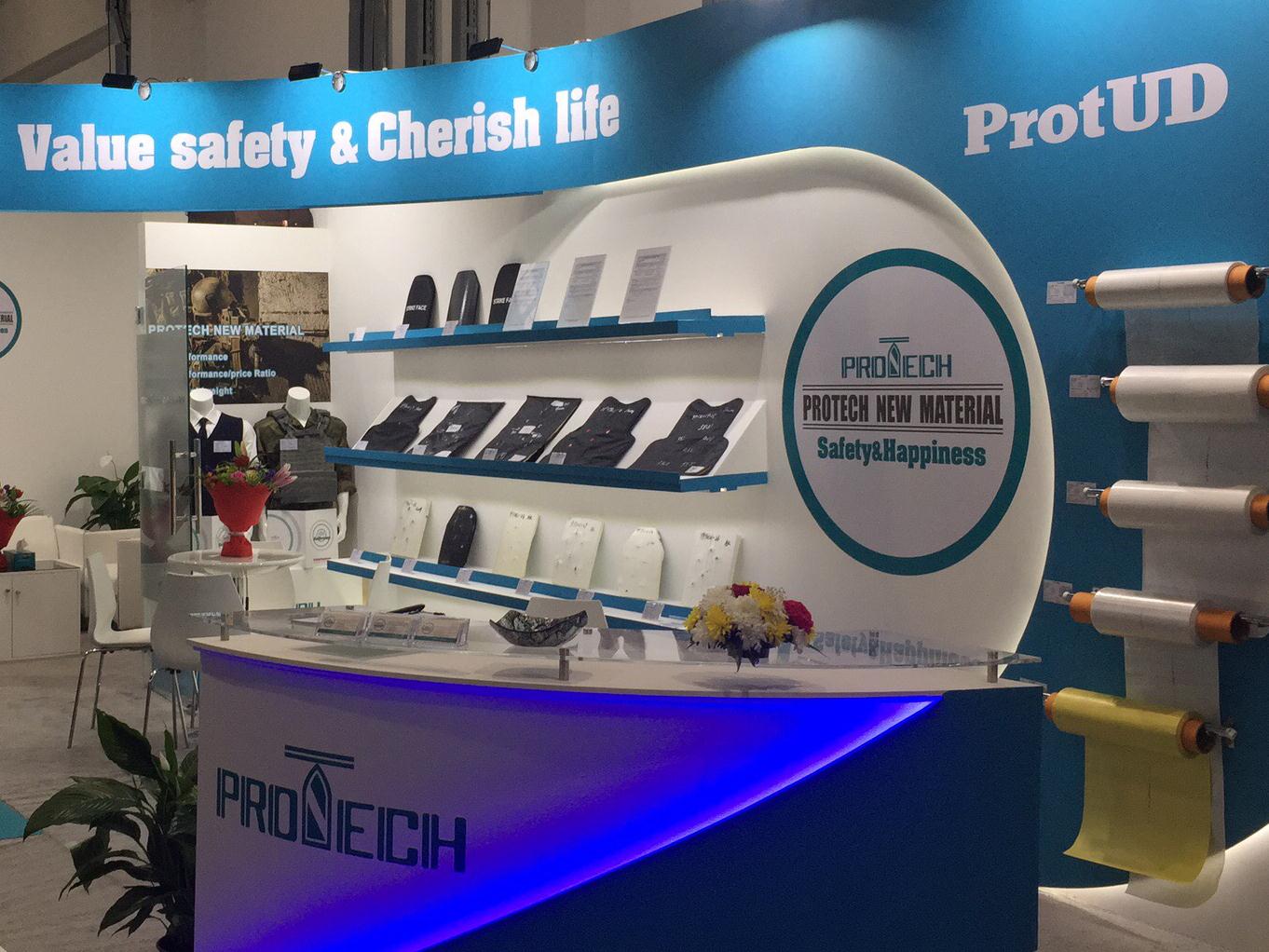 在本届展会上北京普诺泰新材料科技有限公司再次推出普优泰各系列防护UD产品,包括芳纶和超高分子量聚乙烯纤维UD两大类,涵盖了软硬质装甲多个领域,品种齐全,性能优异。普优泰多项产品已达到世界先进水平,此次展示的系列防弹测试样品以及包括NTS、TNO在内多家世界权威专业测试机构的检测报告,再次彰显了普优泰产品性能领先、品质稳定的优势,受到各国专业客户的广泛信赖和认可。展会期间,普诺泰董事长周庆博士及参展团队与到会客户进行了广泛的交流与探讨。