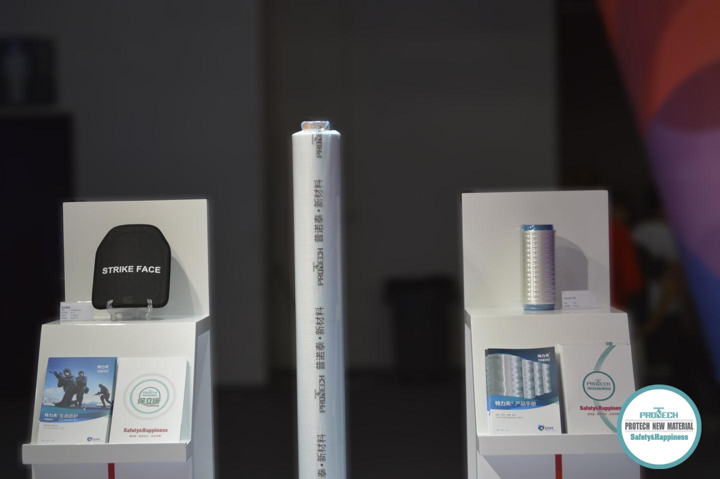 During the exhibition, Protech shows its UD material with the brand name of ProtUD® and down-stream Products. The UHMWPE composite material are mainly made from revolutionary fiber. The down-stream bulletproof products mainly cover bulletproof vest, helmets, insert plates, shields and vehicle armor plates, etc, which had been widely concerned in the industry. For example,the weight of ultralight concealed bulletproof vest is only 1kg which is especially designed for politicians person, it seems similar to common business and leisure vest, but it is much lighter than that of others, which can resist most ammunition of pistols. Another insert plate which made from EP44a is also only 1kg in weight, it is 30% lighter than that of common plates in the markets, it can resist the rifle with 7.62*39mm rifle cartridge effectively.