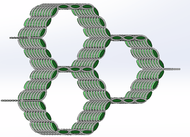 Continuous-fiber honeycomb composites are composed of a continuous, multi-layer honeycomb fabric preform, integrally form from high-performance fibers such as aramid, glass or carbon fibers, which serves as the reinforcement. With a thermosetting resin as the matrix, the material is integrally molded using the VARTM process. It shows outstanding compressive, flexural and shear strength.